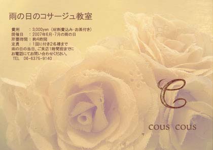 2007年6〜7月の雨の日限定で開催したコザージュ教室のお知らせ
