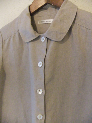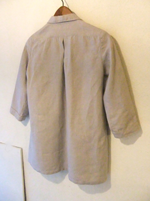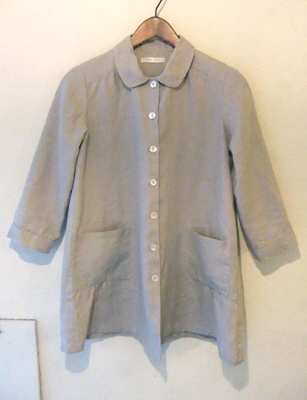 前ボタン明きの、衿付きワンピース。麻や厚めの綿などでつくって、羽織りとしても使えます。