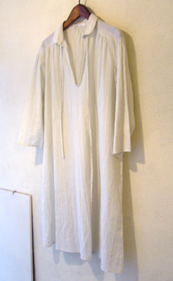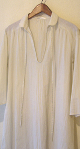 衿がついていて、前中心はボタン明きではなく、大きく開いた、スキッパーというデザインのワンピース。