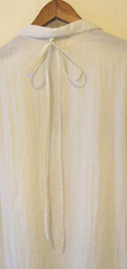 衿ぐりについている共布のひもは、ウエストに巻いたり、後ろ中心からリボン結びで垂らしたり、いろいろアレンジ出来ます。