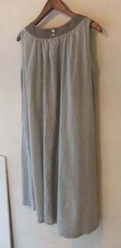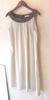 こちらは細いストライプの綿生地に、切り替え部分を黒っぽいデニムにしています。