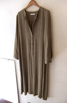 マキシ丈のカジュアルなワンピース。この生地は綿麻混ですが、どんな素材でも可能です。