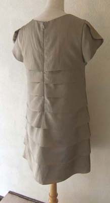 上品で控えめな光沢のある、ベージュの生地のワンピース。裏地付き、後ろファスナー明きです。