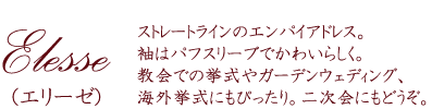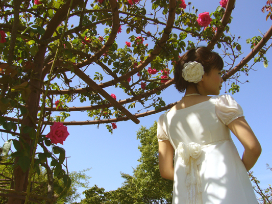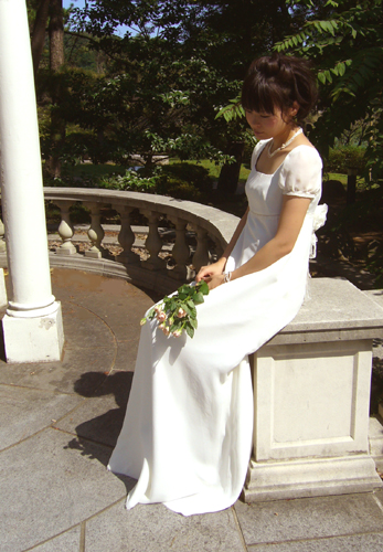 こちらもオーダーをいただいておつくりしたドレスです。シンプルなデザインで、人気でしたので、エリーゼと名前をつけて定番のデザインにしました。
